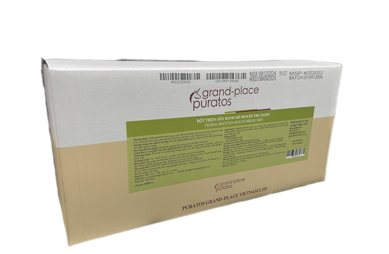 Bắt nhịp với xu hướng bánh mì mè Hàn Quốc rất được ưa chuộng trong thời gian gần đây, Puratos Grand-Place giới thiệu sản phẩm Bột trộn sẵn bánh mì mochi vị Trà Xanh.
