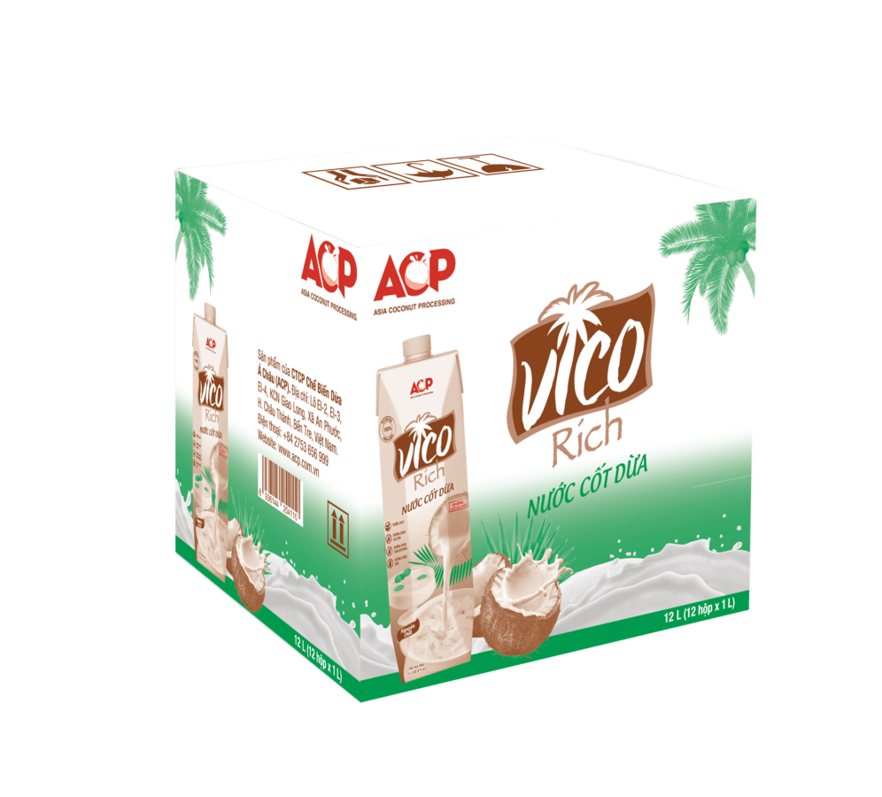 Nước cốt dừa VICO RICH được sản xuất từ cơm dừa tươi, qua công nghệ tiệt trùng UHT. Sản phẩm có hương vị đậm đà, giàu chất dinh dưỡng, được đóng gói bao bì Tetra Pak rất tiện dụng.